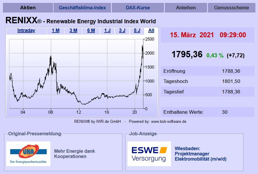 Aktienindex RENIXX - Renewable Energy Industrial Index - Erneuerbare Energien